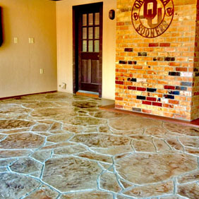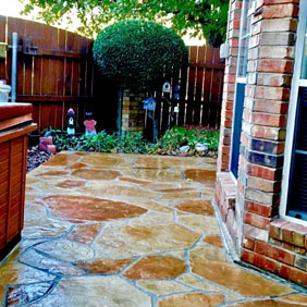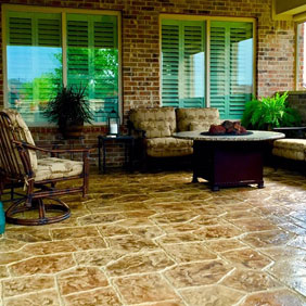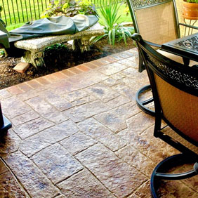 - 3/8” Stamped Concrete overlay system that can be applied over all existing surfaces.